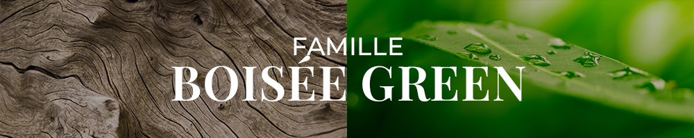 La famille boisée green associe la profondeur chaleureuse des bois à la fraîcheur végétale et naturelle des notes vertes.