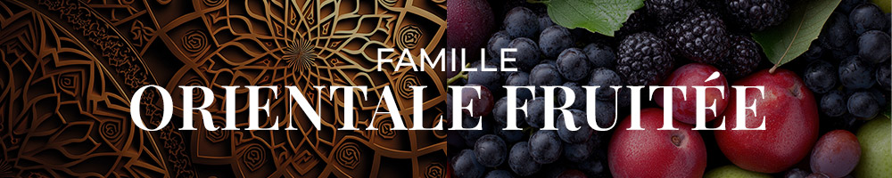 La famille orientale fruitée marie la chaleur envoûtante des notes orientales (ambre, vanille, résines, épices) à la gourmandise juteuse et lumineuse des fruits.C’est une famille qui séduit par son contraste : la fraîcheur acidulée des fruits vient adoucir et moderniser la richesse orientale.